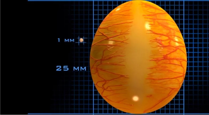 原始卵子直徑不到1mm,經(jīng)過(guò)1-2周的發(fā)育時(shí)間,直徑達(dá)到25mm左右,成為一顆成熟卵子。